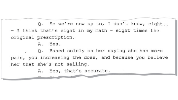For the previous 13 months, her doctor had escalated her dosage of potent opioids despite cautions from police that her reports of stolen medication were questionable.
