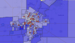 Interactive: Explore the map to see how payday lending locations correlate with social assistance levels in your neighbourhood. Click a circle or coloured shape for more information; click and drag to move around.