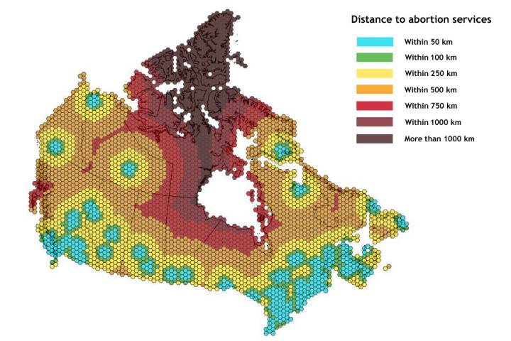abortionmapdarkerforweb Published December 28, 2015 at 720 × 480 in Provider patchwork: How abortion access varies across Canada Next →