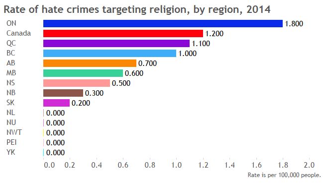 hate crimes by region – religion Published April 23, 2016 at 649 × 369 in Hate crimes against Muslim-Canadians more than doubled in 3 years ← Previous Next →