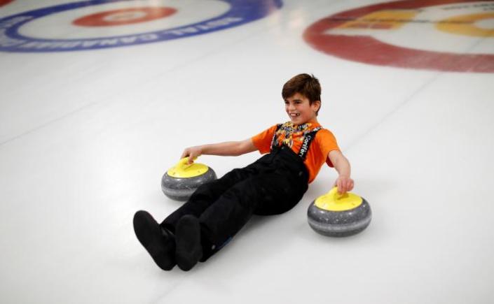 Arun Daniel and his mom, Suguna, first touched Canadian soil two weeks ago and, on Wednesday, they first touched ice, sliding on one knee and pushing a 40-pound granite rock across a rink.